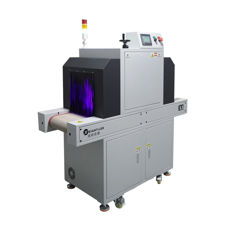 2、設(shè)備提供連續(xù)模式和后端模式可選,連續(xù)模式下,點(diǎn)擊啟動(dòng)按鈕,UV機(jī)傳送帶及UVLED一直工作,點(diǎn)擊停止按鈕停止UV機(jī)工作;后端模式下,點(diǎn)擊啟動(dòng)按鈕,UV機(jī)傳送帶及UVLED開始工作,當(dāng)后端傳感器感應(yīng)到產(chǎn)品后,傳送帶及UVLED停止工作,當(dāng)產(chǎn)品拿走后繼續(xù)進(jìn)入下一個(gè)循環(huán)。